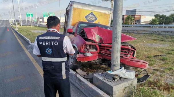 Reynosa, Tam.- El exceso de velocidad y presuntamente un cerrón fueron las causas para que una camioneta repartidora de tortillas terminara impactada contra una lámpara luminaria en el Libramiento Monterrey-Matamoros en horas de la madrugada.