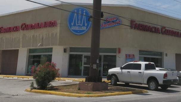 ¦ LUGAR. La farmacia Guadalajara fue asaltada por delincuentes armados con pistolas.