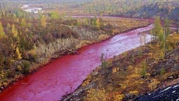 Se pinta de rojo sangre río en Rusia