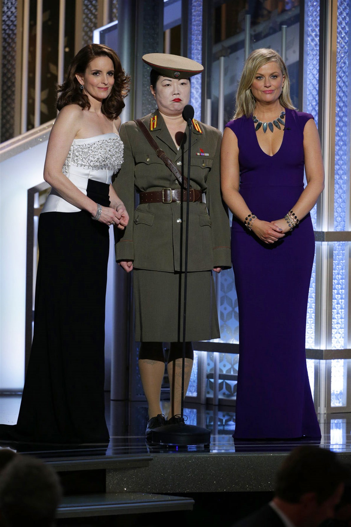 La ceremonia arrancó con una presentación de Tina Fey y Amy Poehler, quienes le dieron la bienvenida a los "mocosos despiadados, malcriados y mínimamente talentosos" de Hollywood a la 72a entrega anual de los Globos de Oro para celebrar "todas las películas que están bien con Corea del Norte". Varias veces visitaron a un personaje norcoreano interpretado por la comediante Margaret Cho, que expresó su disgusto con todos los aspectos del show.