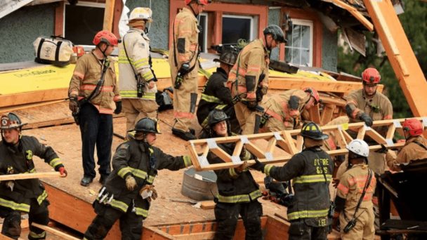 Un video en redes mostró a varios bomberos usando sierras y otras herramientas para tratar de excavar entre los escombros. Además, fueron evacuadas dos casas adyacentes.