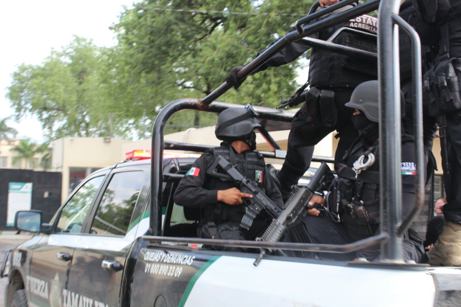 En el despliegue participan oficiales de la Policía Estatal Fuerza Tamaulipas, de la Policía Estatal Investigadora, de la Policía Federal, y del 77 Batallón de Infantería, cabe señalar que la mañana de este miércoles continuaron las detonaciones de arma de fuego del interior, pero estas fueron sofocadas rápidamente, no obstante no se ha recuperado el control del penal por lo que las visitas están suspendidas.