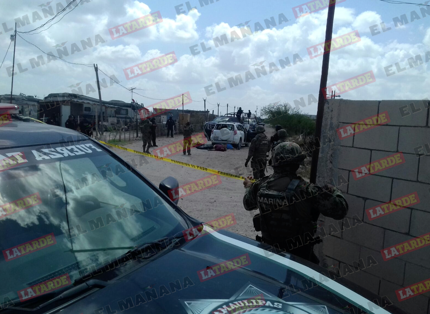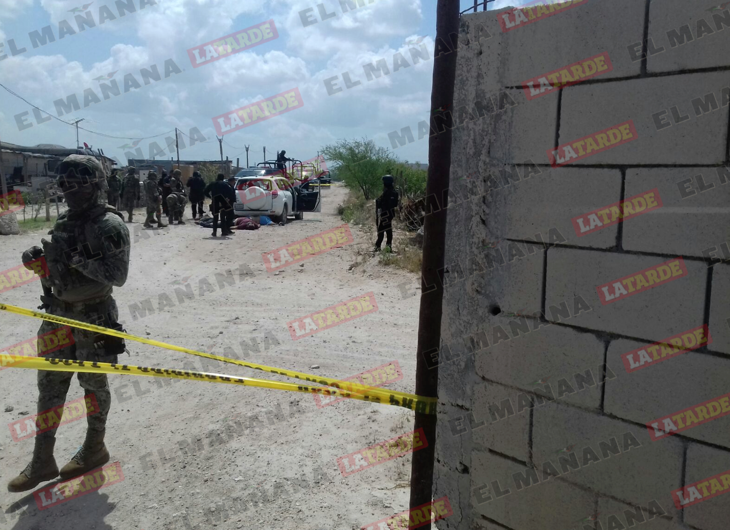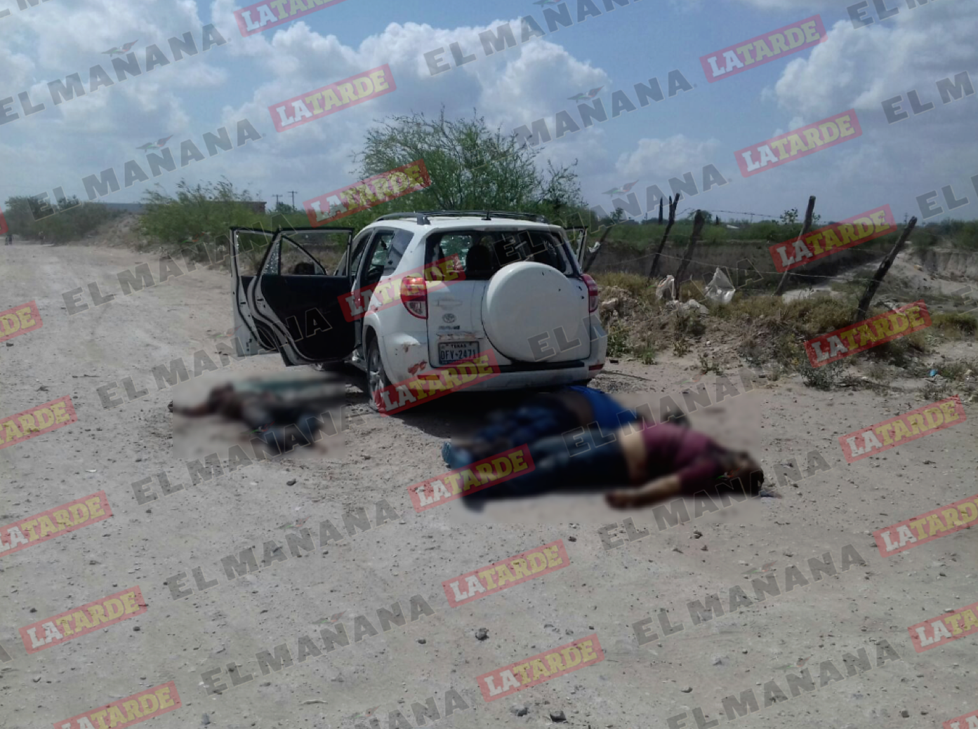 Antes del arribo de las autoridades, reporteros de EL MAÑANA observaron que los tres cadáveres quedaron sobre la calle de terracería, a un costado de la camioneta Toyota RAV4 con placas de Texas que tripulaban y que quedó con las puertas abiertas y devastada por decenas de proyectiles de alto poder que impactaron la carrocería.