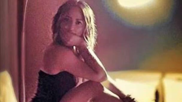 En la imagen aparece con un body que deja al descubierto sus piernas, una de las cuales está flecionada y sobre ella recarga su codo.