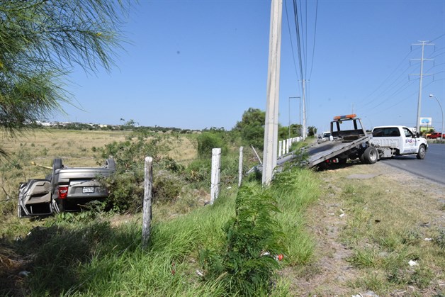 Reynosa, Tam.- Cuando se dirigía a su trabajo, una empleada se volcó en su unidad luego de evitar chocar contra una camioneta que se le atravesó en el libramiento a Monterrey.