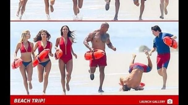 Zac Efron sufrió una estrepitosa caída mientras se encontraba filmando una escena de su próxima película, Baywatch; el divertido momento fue captado a través de una serie de imágenes en donde se ve a Efron corriendo en la playa junto a sus otros compañeros de elenco y después aparece tirado en el suelo, ante la mirada de algunos miembros del elenco.