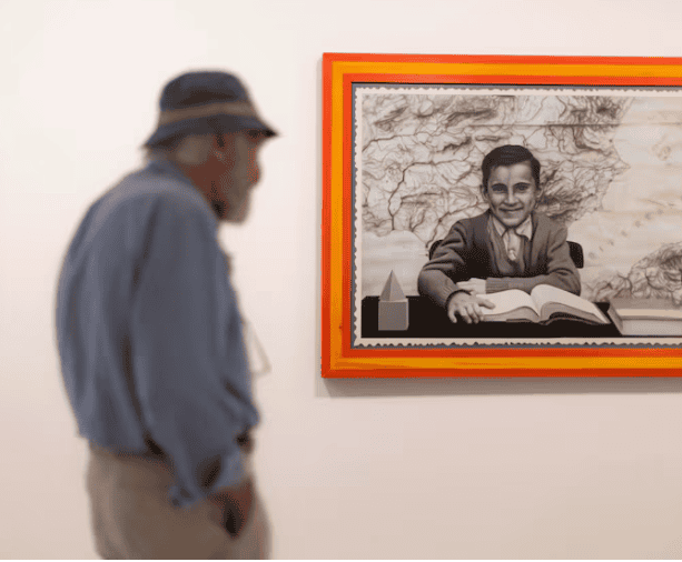 Ante la obra de la que no tardaría en brotar su sorprendente diálogo con Cézanne o sus interpretaciones del cubismo más colorista, el artista responde que puede ser acertada la interpretación del comisario. Fijando su mirada verdosa sobre la pintura, parece más cómodo hablando de sus orígenes. Cuenta que es el cuarto de una familia de nueve hermanos del madrileño barrio de Salamanca, zona en la que él sigue viviendo aunque en su vida haya habido muchas idas y venidas. "Tenía facilidad para dibujar, pero ninguna idea de ser artista. Pero yo era un pésimo estudiante, de esos que suspenden casi todas y mi padre decidió que me centrara en lo único que se me daba bien, el dibujo". Con el fino sentido del humor que no le abandona, añade que la única salida que le hubiera quedado hubiera sido la de ser conserje del Banco de España, dado que allí trabajaba el padre y lo había hecho la madre hasta que empezaron a llegar los hijos.