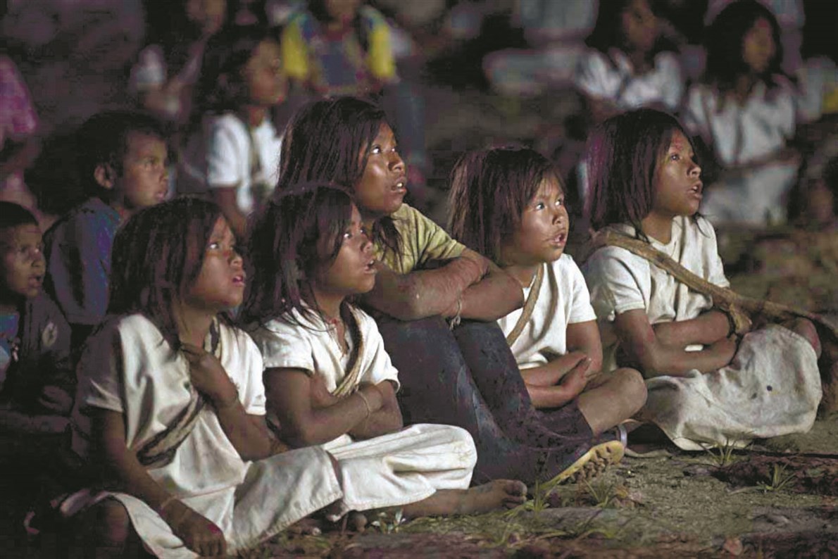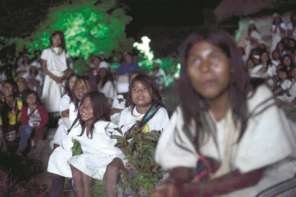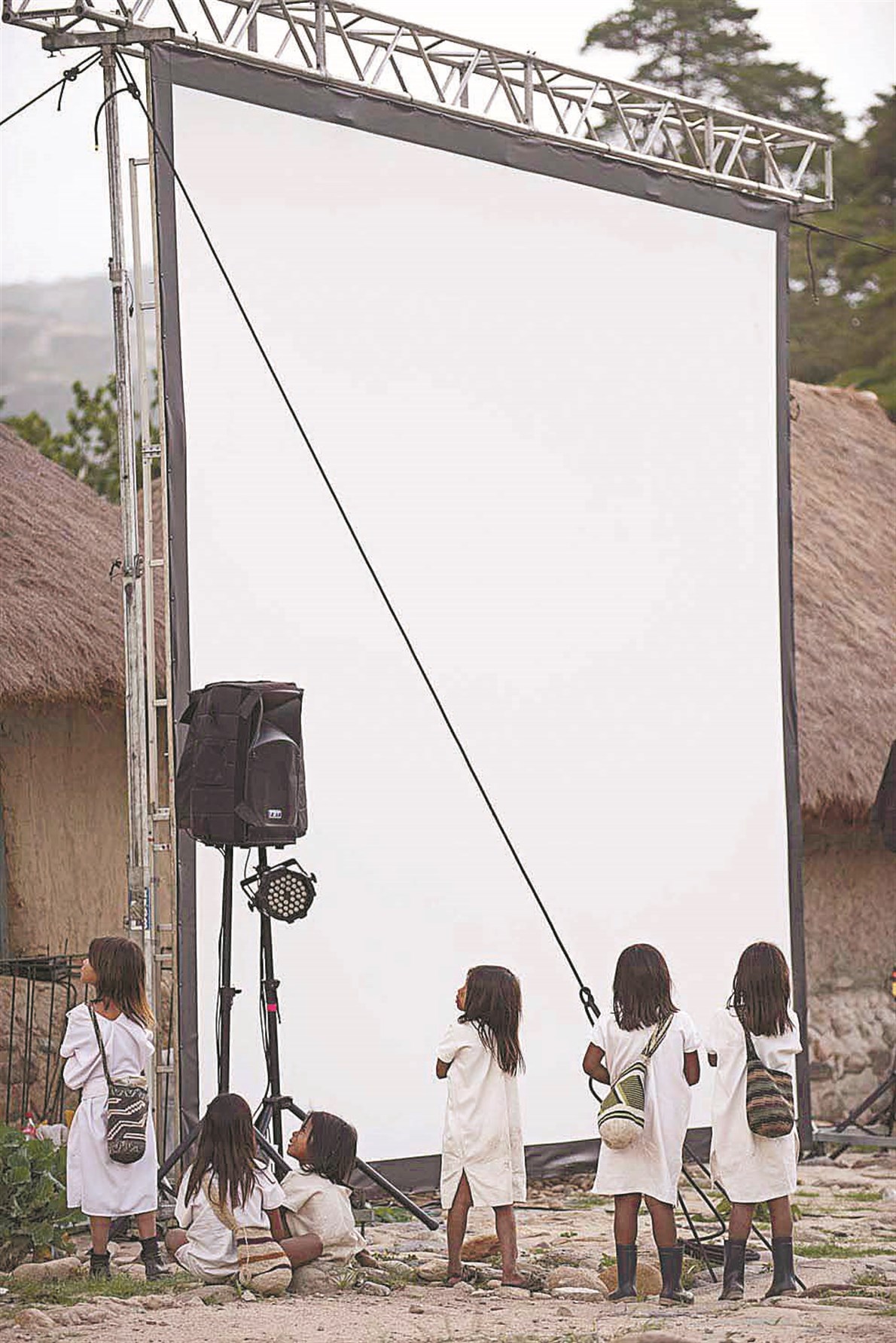 Unos 500 arhuacos, habitantes de Nabusimake, en la sierra del norte del país, ven por primera vez, emocionados y entre risas, una producción cinematográfica