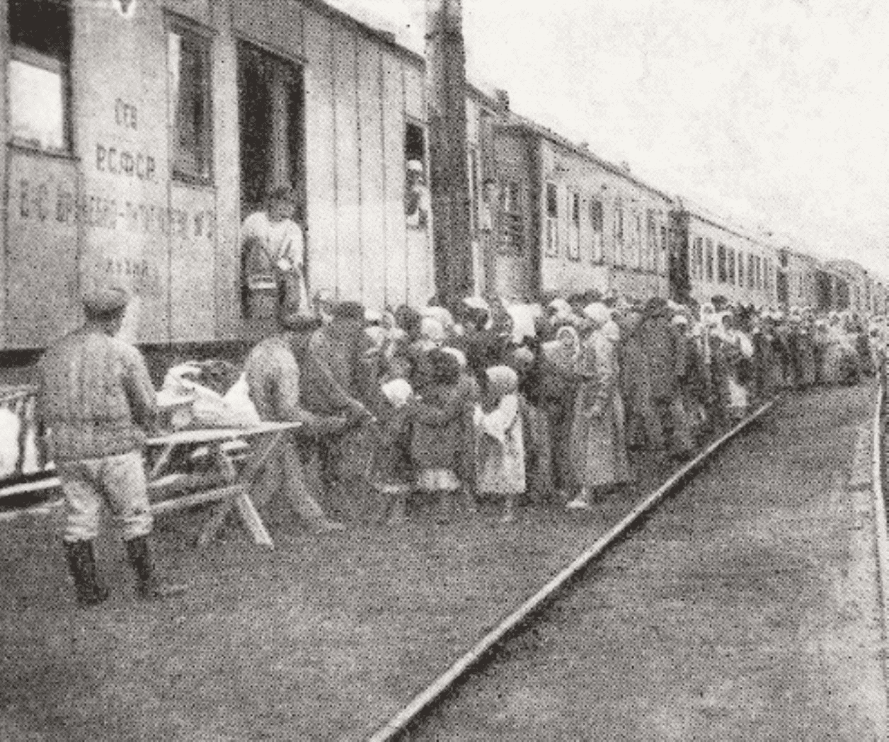Distribución de comida a la población hambrienta en la estación de Samara (Rusia), en 1921, tras la Revolución Rusa.