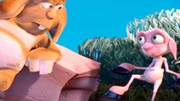 El cordero se siente desgraciado con su nuevo aspecto y se va a ocultar bajo una roca, sintiéndose también avergonzado y humillado. Aparece entonces un animal extraño, mezcla de conejo y antílope (acuérdense, es Pixar), que al ver al cordero triste y cohibido, le pregunta qué le pasa. Éste le platica: "Yo siempre fui suave, igual que algodón, lucía ante todos danzando mi son, pero sin avisar, sin ninguna razón, se llevaron mi lana y me dejaron pelón. Los demás al pasar se ríen de mí, y es cruel porque sus burlas rozan mi piel".