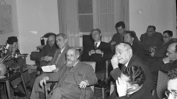 El filósofo Martin Buber, en el centro, retratado en 1949.