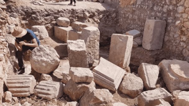 Fragmentos arquitecto´nicos encontrados en Valeria en la campan~a de 2023.