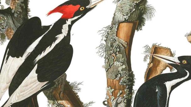 Una pareja de carpinteros pico de marfil, en un dibujo realizado por el histórico ornitólogo John James Audubon.