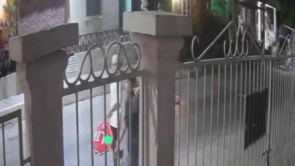 Tres jóvenes fueron captados por una cámara de seguridad mientras sustraían un señalamiento de alto