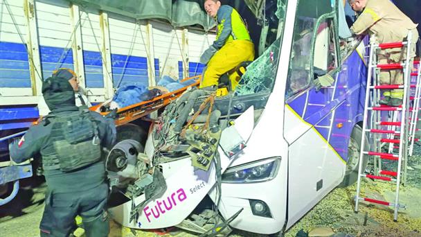 El caso más grave se registró en la Carretera Federal 83 González–Hidalgo, donde un autobús de pasajeros impactó contra un tractocamión, dejando dos personas fallecidas y 36 lesionadas, incluidos menores de edad.