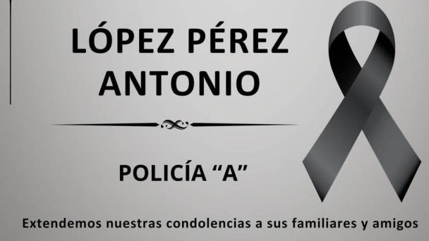 El elemento policiaco que murió en cumplimiento de su deber respondía al nombre de Antonio López Pérez, esto al no soportar las graves heridas que le provocó un proyectil de arma de fuego en la cabeza.