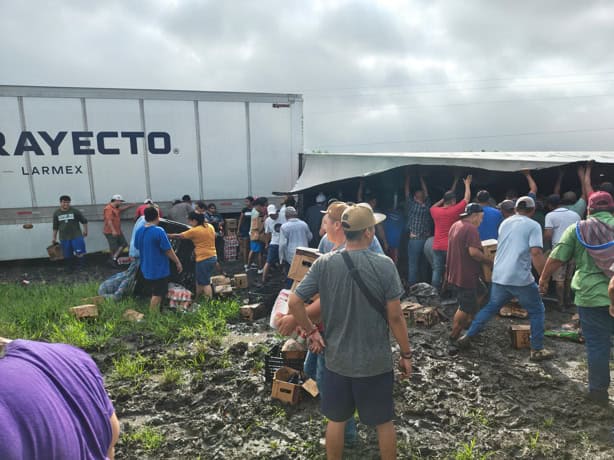 Vuelca trailer cargado de cerveza; la rapiña en todo su esplendor.