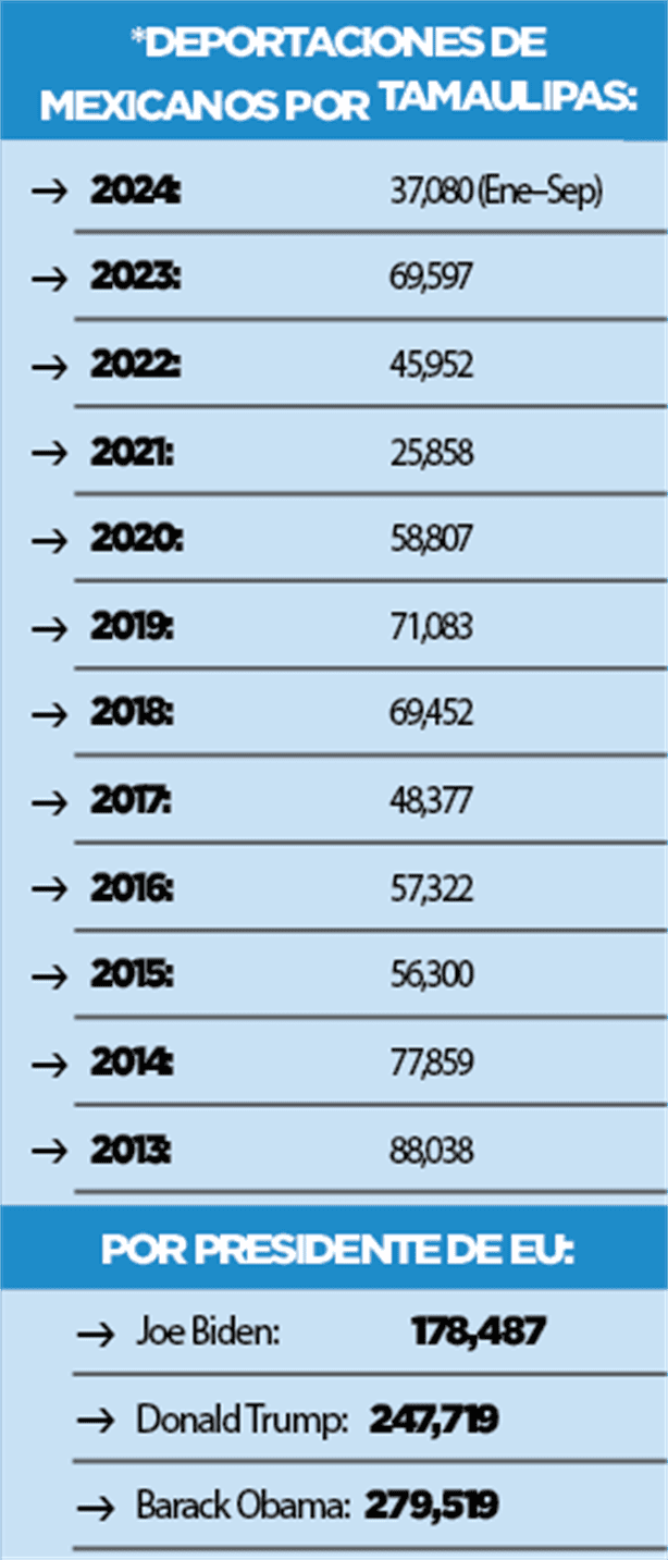 Datos de la Unidad de Política Migratoria de la Secretaría de Gobernación (Segob) establecen que, en la última década, Tamaulipas se posicionó entre las tres entidades federativas por donde se deportaron más mexicanos por los gobiernos de Barack Obama, Donald Trump y Joe Biden.