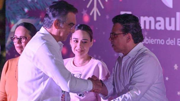 El alcalde Eduardo Gattás Báez y su esposa Lucy de Gattás, participaron en el desfile navideño presidido este domingo por el gobernador Américo Villarreal Anaya y su esposa María de Villarreal, presidenta del Sistema DIF Tamaulipas.