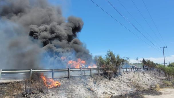 Cierre total en la carretera debido a la explosión de una pipa en los límites entre Tamaulipas y Nuevo León.