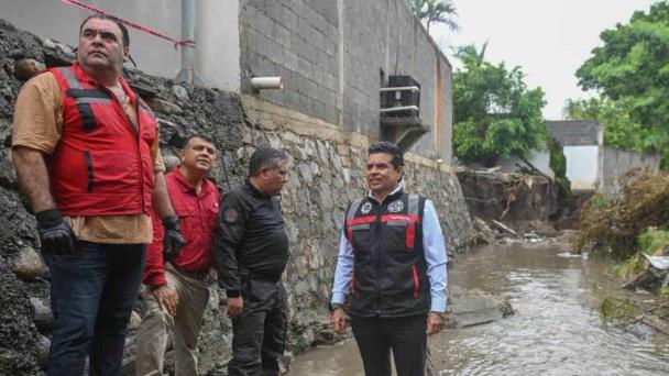 Al presidir la reunión de gabinete y recibir el informe de la Coordinación de Protección Civil, se hizo acompañar de los secretarios de Servicios Públicos, Obras Públicas y Comapa para, bajo la lluvia asociada a la depresión tropical "Barry", inspeccionar el buen funcionamiento de servicios públicos, vialidades, drenes y drenaje sanitario.