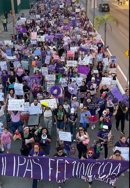 En la zona sur del estado, el Colectivo Feminista Mujer Manglar convocó a una concentración en el estacionamiento de Walmart Alijadores a las 3:00 p.m. Desde ahí, las asistentes marcharon por la avenida Hidalgo, una de las más transitadas de la ciudad, hasta llegar a la Plaza de Armas.