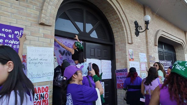 El colectivo Manada Feminista de Nuevo Laredo organizó una marcha que inició en la Plaza Hidalgo a las 4:00 p.m. Durante el recorrido, las manifestantes hicieron paradas estratégicas en edificios gubernamentales para visibilizar casos de violencia en la región.