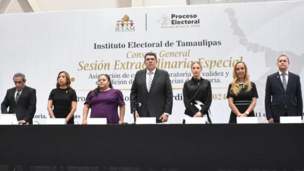 El Consejo General del Instituto Electoral de Tamaulipas (Ietam) organizó la entrega en las instalaciones del Polyforum Dr. Rodolfo Torre Cantú, de Ciudad Victoria, luego de concluir el cómputo estatal para los diferentes cargos, en una jornada que se extendió por más de dos horas.