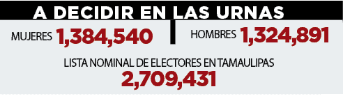 El Mañana / Staff.- A partir de las 8 de la mañana de hoy más de dos millones 722 mil tamaulipecos podrán acudir a votar a las urnas en cuatro mil 772 casillas instaladas en la 43 municipios de la entidad para elegir a una de las tres opciones políticas para gobernar a Tamaulipas durante los próximos seis años.