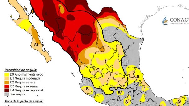 Este informe, que se actualiza cada 15 días, muestra el estado de la sequía en un momento determinado, misma que ha sido un fenómeno constante durante los últimos nueve años debido a que las precipitaciones han sido menores al promedio durante dicho período.
