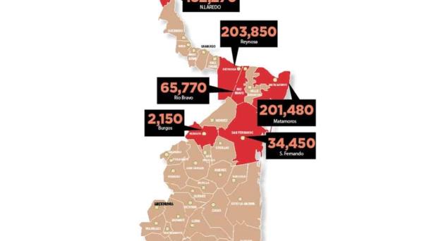 Los municipios que concentran el mayor número de pobres son, Reynosa, con 203 mil 850 personas; Matamoros, 201 mil 480 pobres; Nuevo Laredo, 152 mil 270; Altamira, 123 mil 360 y Victoria, con 122 mil 370.