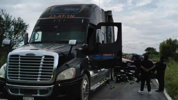 Tráiler cargado con chile morrón sufre accidente en carretera Victoria-Matamoros