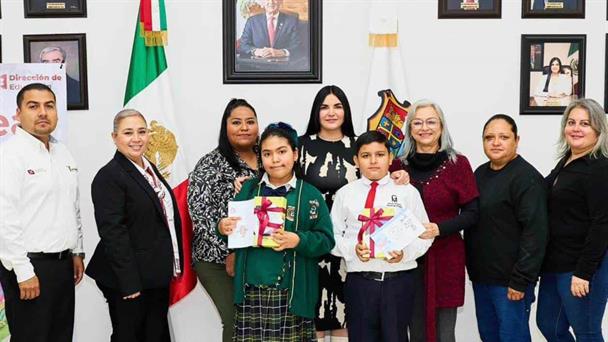 Como un reconocimiento a su talento, los ganadores entre decenas de participantes, Nayla Hernández Jardón de 9 años alumna de la primaria Genaro G. Ruiz, con su cuento La semillita Valiente y Franco Kaleb Santos López de 11 años alumno de la primaria Guadalupe Mainero con su cuento Me Tengo a Mi, recibieron una Tablet por parte del Gobierno Municipal que preside la alcaldesa Nataly García Díaz.