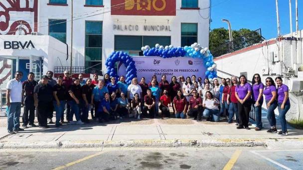 Díaz Ordaz, Tam.- En el marco del mes de la prevención contra el cáncer infantil, se llevó a cabo la Primera Convivencia Ciclista en la que participaron padres de familias y alumnos de preescolar, realizada de manera coordinada entre la supervisión de preescolar 051, 34 de educación física y DIF municipal con el apoyo del gobierno municipal 2021-2024, con el fin de prevenir en las niñas y niños enfermedades crónico degenerativas a muy temprana edad.