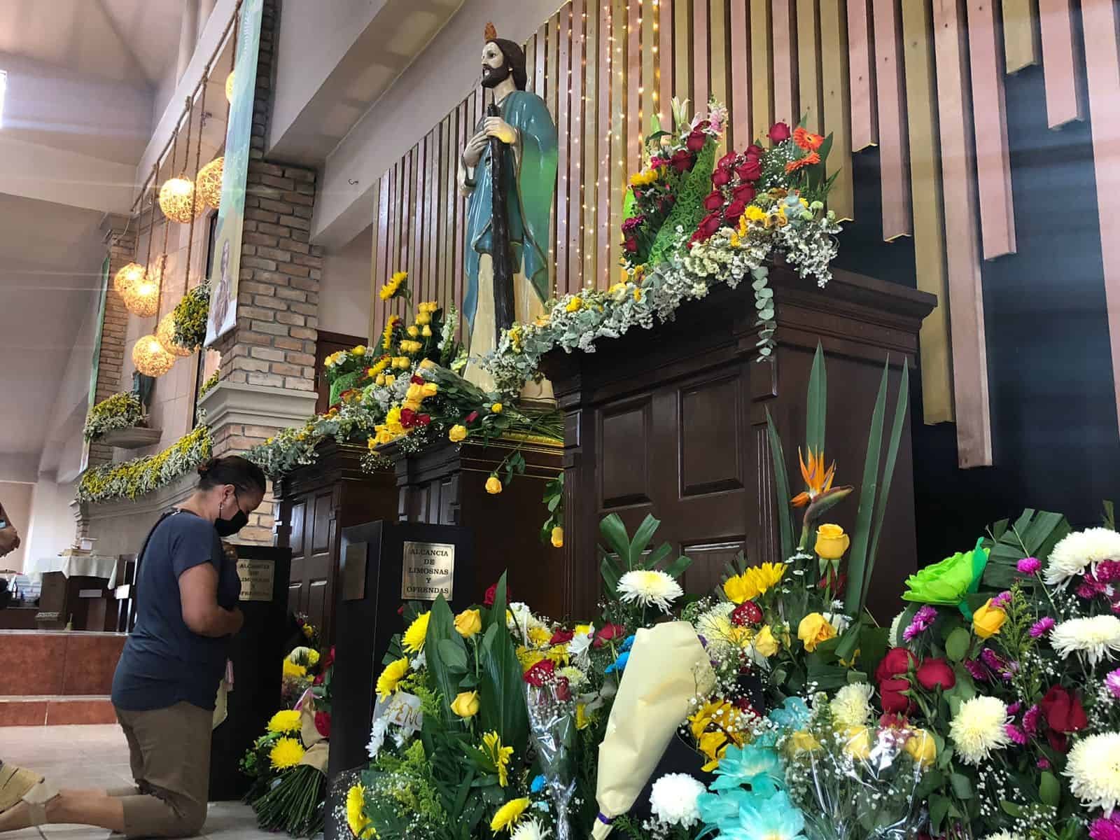 Más de 12 mil personas desfilaron por la iglesia de San Judas Tadeo en su día, iniciando la peregrinación desde el pasado jueves por la tarde noche, prolongándose en la madrugada y durante todo el viernes, en donde se estuvo recibiendo a los feligreses quienes acudieron a dicho templo católico.