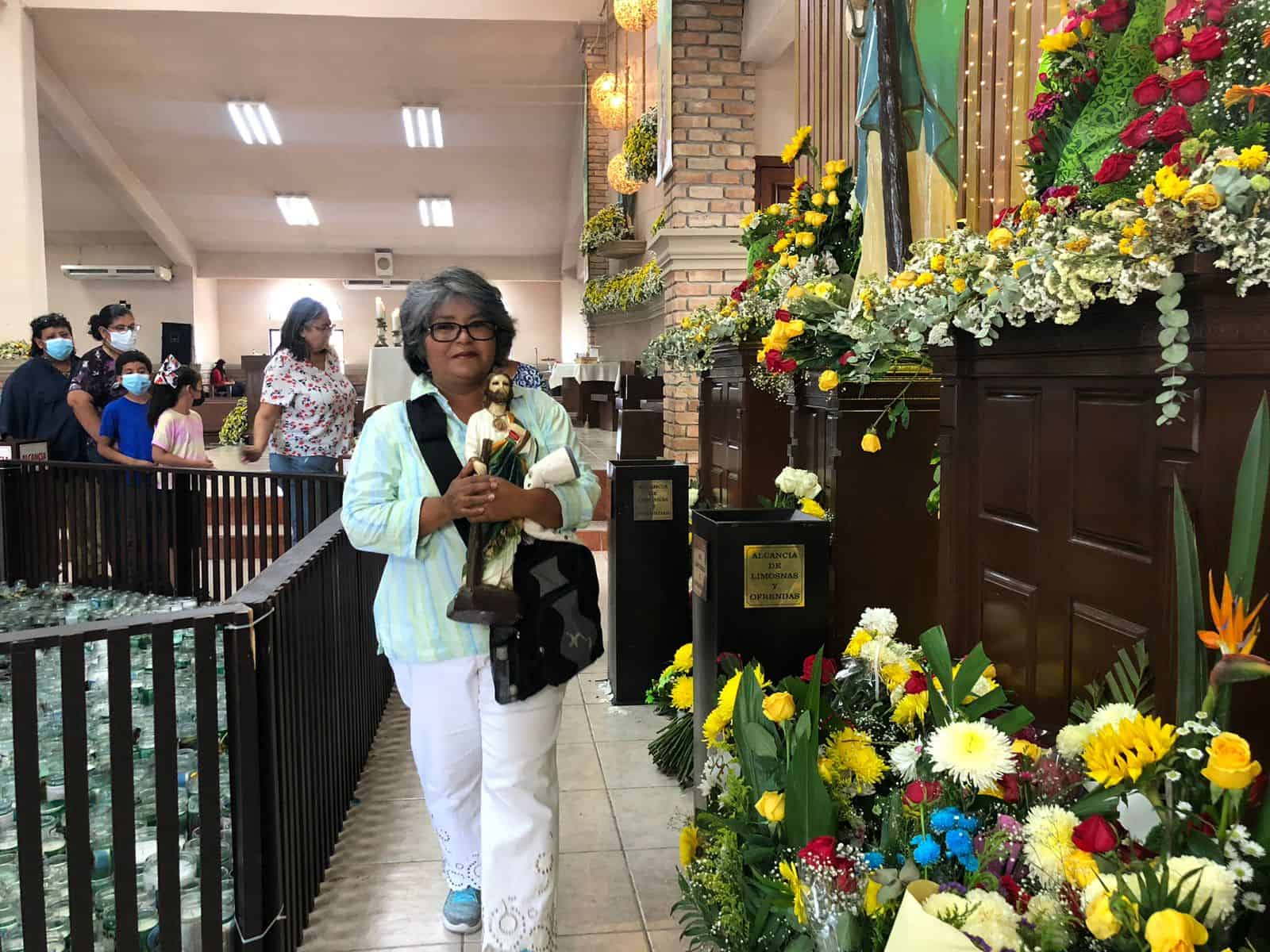 Algunas personas llevaban cargando figuras de San Judas, otros arreglos florales, veladoras y hasta los niños con la vestimenta de este santo.