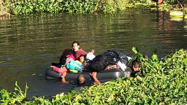 - Pese a lo peligroso que esto representa, algunas familias completas se arriesgaron a cruzar con todo y niños, a quienes los llevaban a bordo de un colchón inflable.