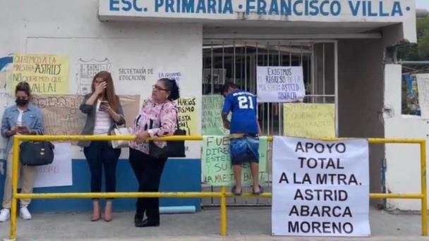 En la entrada principal colocaron cartulinas en donde se podía leer: “fuera la directora”, “exigimos el regreso de la maestra Astrid Abarca”, “Estamos hartos del favoritismo que hay en esta institución, ya basta”, “soy Max y quiero a mi maestra Astrid de regreso”, entre otras demandas que hicieron los mismos padres de familia al momento de tomar la escuela primaria “Francisco Villa”.