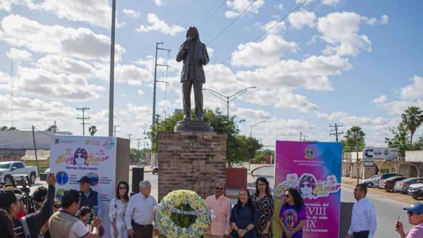 Matamoros, Tam.- Autoridades municipales a través de la Secretaría de Educación, Cultura y Deporte conmemoraron el 78 Aniversario del Natalicio del matamorense Rigo Tovar, quien puso a Matamoros en los ojos del mundo.