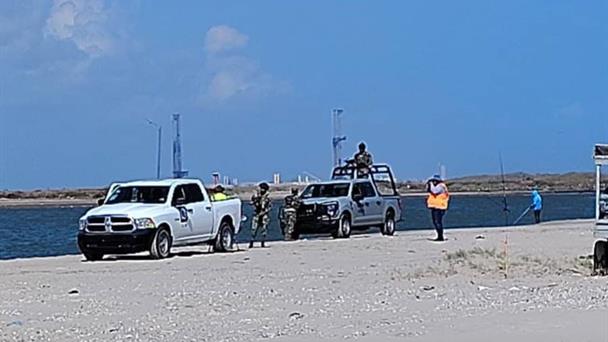 Autoridades federales acompañadas por elementos de la Secretaría de Marina llevaron a cabo un operativo de medición en la boca del río, donde utilizaron equipo de topografía, drones y colocaron diversas estacas fosforescentes en puntos estratégicos de la zona.