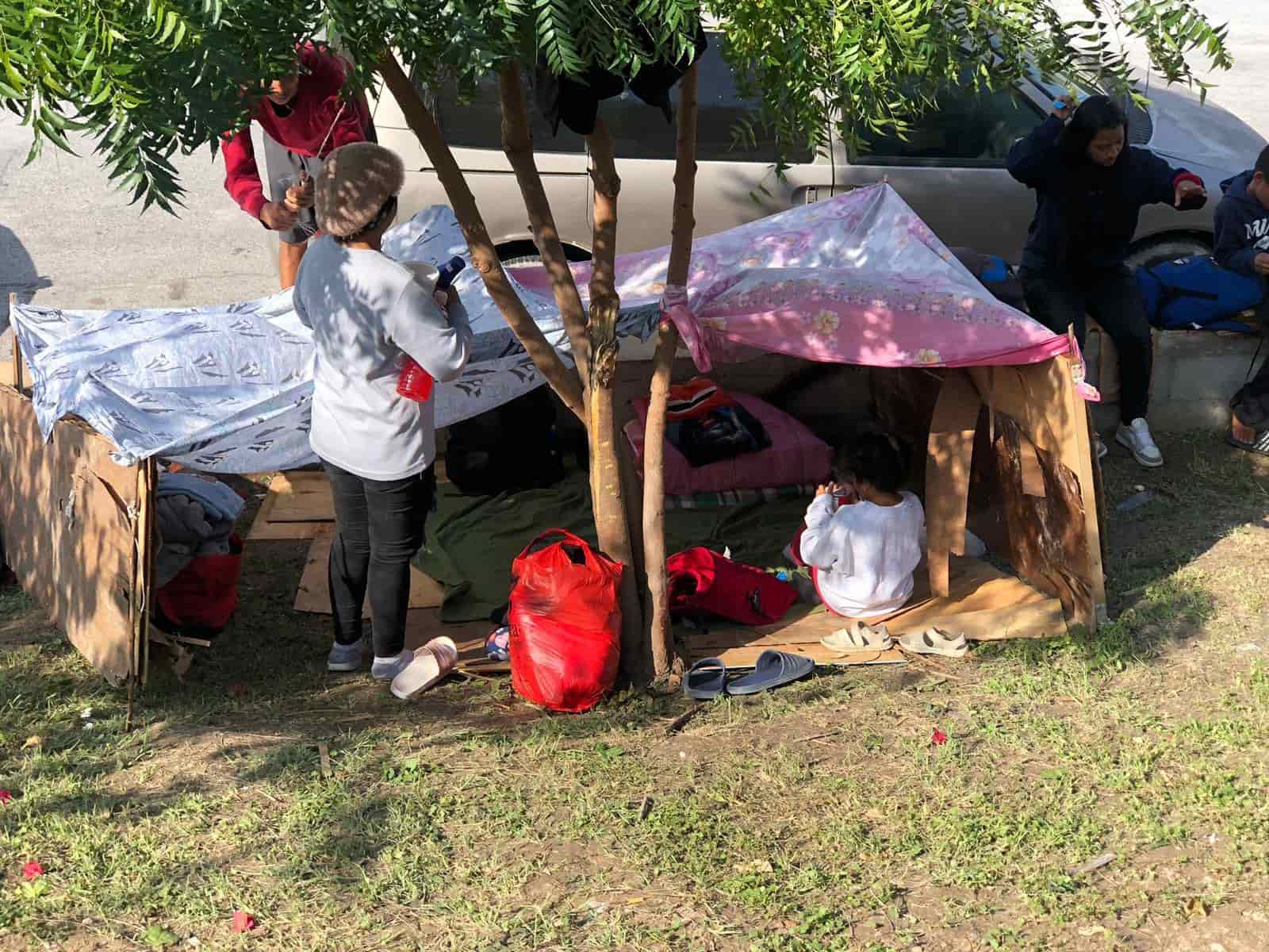 Algunos obtuvieron la donación de una casa de campaña, otros la compraron, pero también hay familias que amarraron una cabilla entre los árboles y crear su propia casita en donde duermen y esperan el día para poder llegar al vecino país.