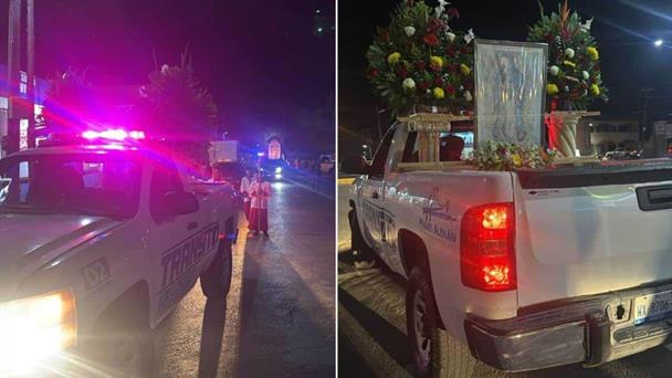 De igual forma, los elementos de vialidad también estuvieron apoyando a los miembros de la comunidad católica, resguardando a la multitud que llevaba la antorcha guadalupana hasta la parroquia San Pedro Apóstol.