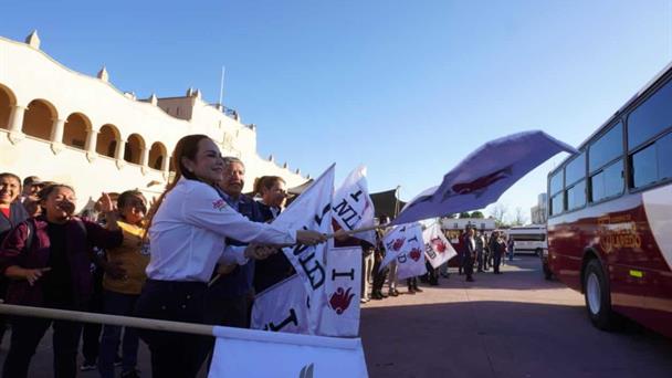 La presidenta municipal Carmen Lilia Canturosas Villarreal dio un paso firme para dignificar el servicio de transporte público en Nuevo Laredo, al encabezar el banderazo de salida de 12 nuevas unidades.