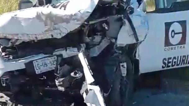 Fuerte accidente entre camión de valores de la empresa Cometra y una camioneta, dejó una persona fallecida y dos heridos.