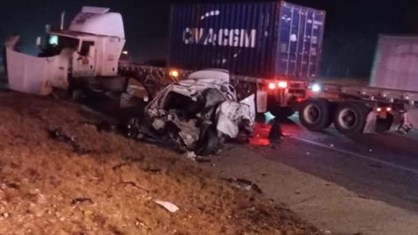 Autoridades que tomaron conocimiento de este fatal accidente automovilístico, señalaron que los hechos ocurrieron la madrugada de este viernes; cuando el automóvil se proyectó con un tráiler Kenworth de la compañía CMAVGM.