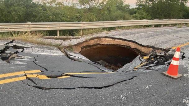 Un socavón registrado en el carril derecho con dirección de sur a norte, a la altura del kilómetro 110 de la Carretera Soto la Marina-Aldama, en Tamaulipas, provocó el cierre total de ese tramo, informaron autoridades estatales.