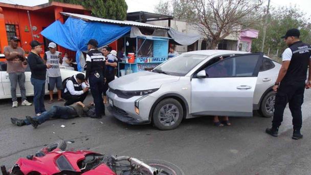 El accidente tuvo lugar en avenida Coahuila norte, entronque con calle Río Pánuco en colonia Fundadores, participando un auto KIA color gris de reciente modelo con placas de Tamaulipas, el cual era conducido por una mujer, así como una motocicleta Italika color rojo conducida por un joven.