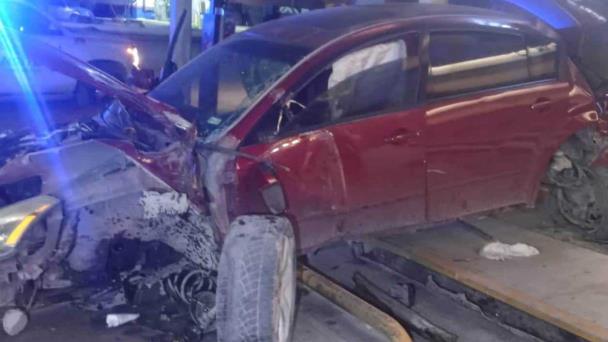El vehículo implicado es un Nissan Sentra, color guinda, que sufrió severos daños tras impactarse contra la fachada del establecimiento, quedando convertido en hierros retorcidos.