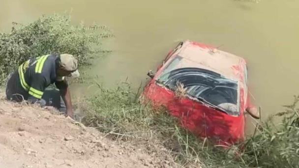 El percance ocurrió en la brecha 26 con 109, donde testigos señalaron que otra unidad sacó del camino al automóvil involucrado, provocando que cayera al canal. De inmediato, dieron aviso a las autoridades viales.
