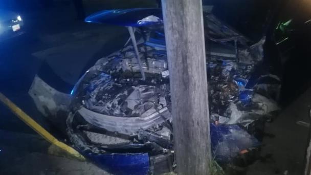 En el lugar quedaron severamente dañados, un flamante vehículo Chrysler color azul modelo 2015 sin placas, cuyo conductor puso tierra de por medio.